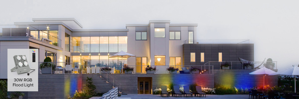 | Fixture Features | RGB floodlights, Memory function, 16 colors & 4 modes, IP66 waterproof, 5-year warranty |